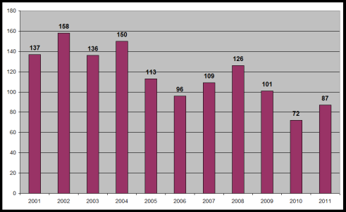 Unfälle durch Hornstöße in den letzten 10 Jahren (LFBG Niederbayern / Oberpfalz und Schwaben)