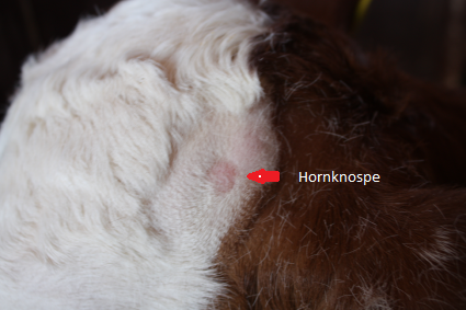 Bereits wenige Tage nach der Geburt sind die erbsengroßen Hornknospen am Kopf des Kalbes tastbar. Sie können in den ersten 2 Lebenswochen entfernt werden. Damit ist gewährleistet, dass die Kälber noch einen ausreichenden Schutz durch die Antikörper, die mit der Biestmilch aufgenommen wurden, besitzen.